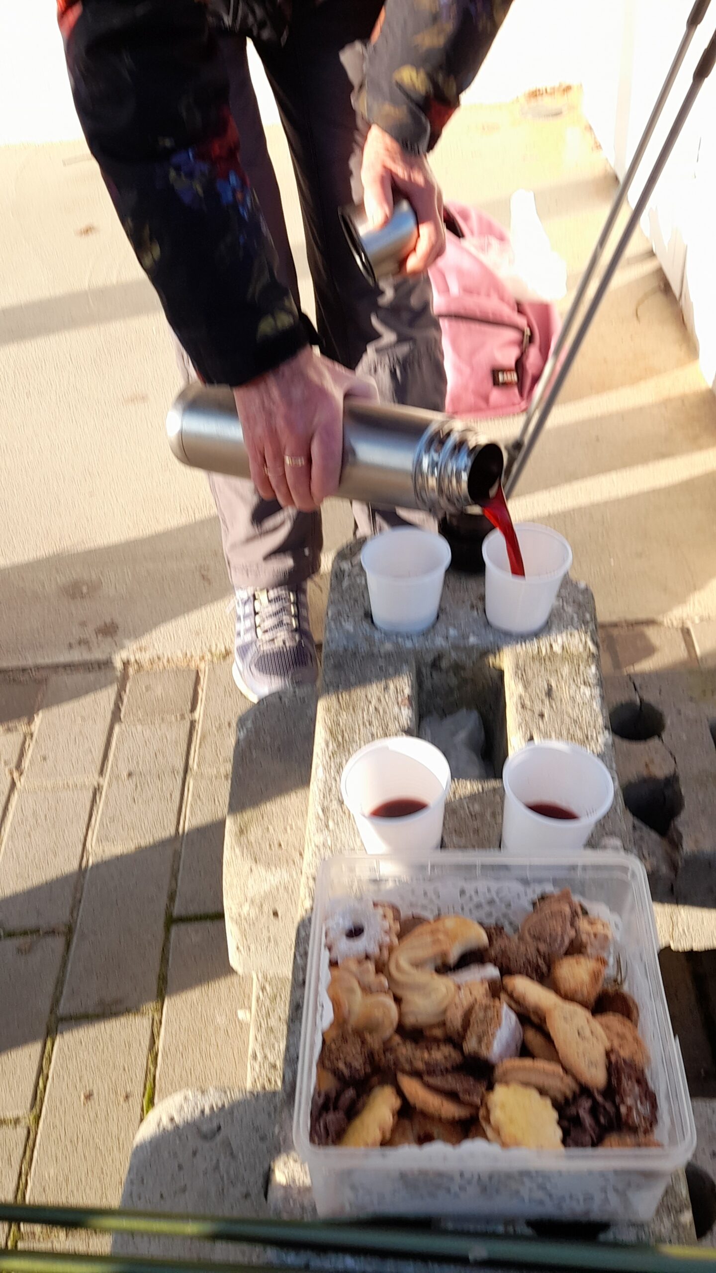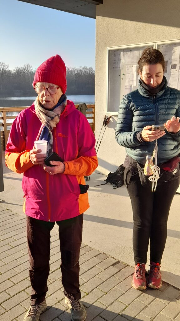 Pendant la pause au bord du plan d’eau, ils ont pu déguster l’excellent vin chaud et les Bredeles préparés par Marianne.