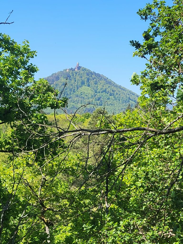 Le parcours nous a ensuite menés au château de Kintzheim où d’intéressants panneaux d’information sur les rapaces sont désormais installés. Retour au parking par le vignoble en profitant du superbe panorama sur la plaine.