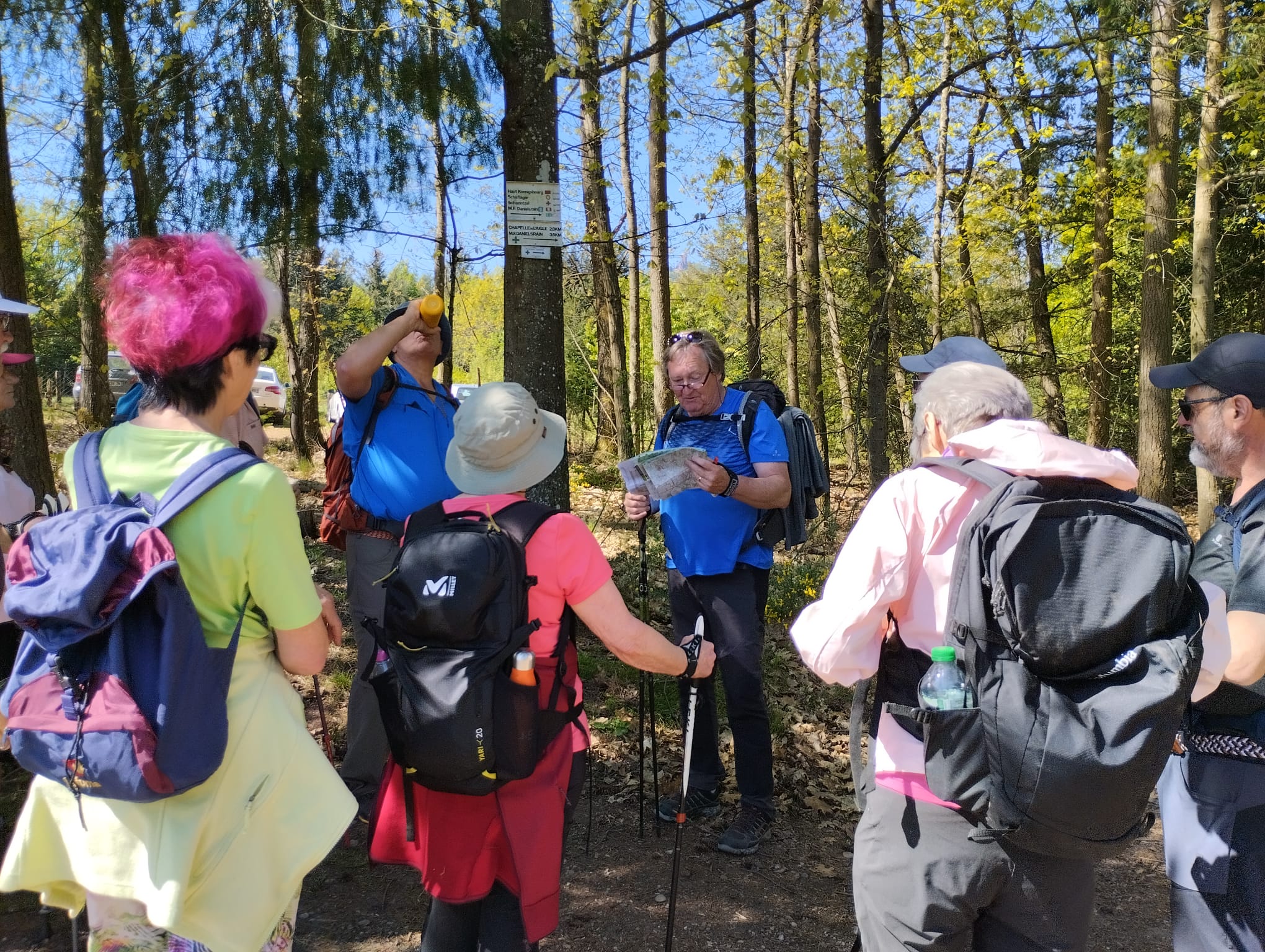 Au départ de l’église St Georges de Châtenois, les 15 participants ont arpenté avec courage les sentiers menant au sommet du Hahnenberg puis vers la Wick et la cabane de Pain d’épices pour une pause pique-nique bien méritée.